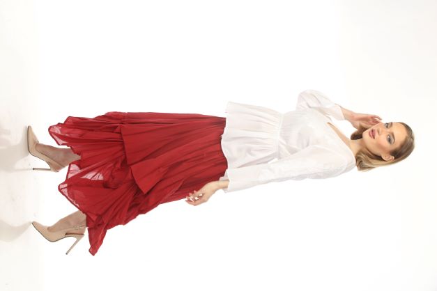 100% Cotton Bubble Skirt -Red And White Embroidery Top