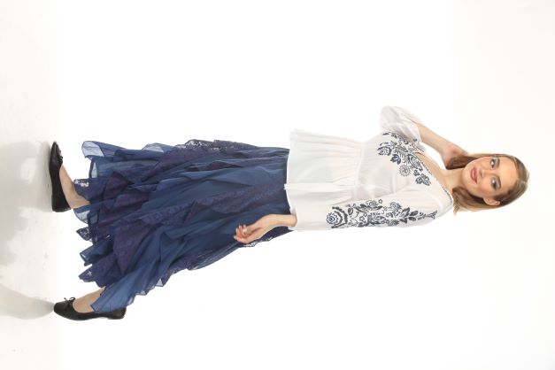 100% Cotton Ruffle Skirt - Royal Blue And 3904 White W- Blue Embroidery