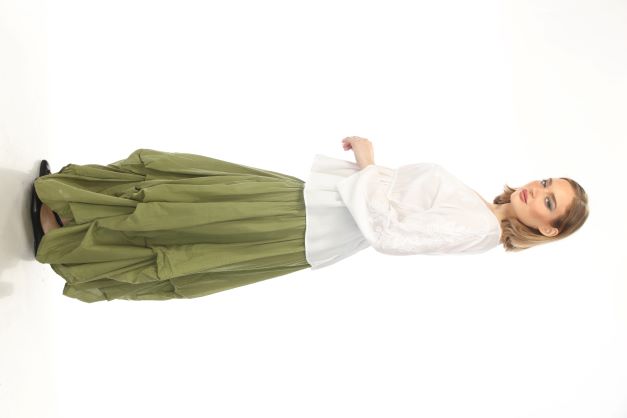 100% Cotton Bubble Skirt -Parrot Green And 3904 White Top W-Embroidery